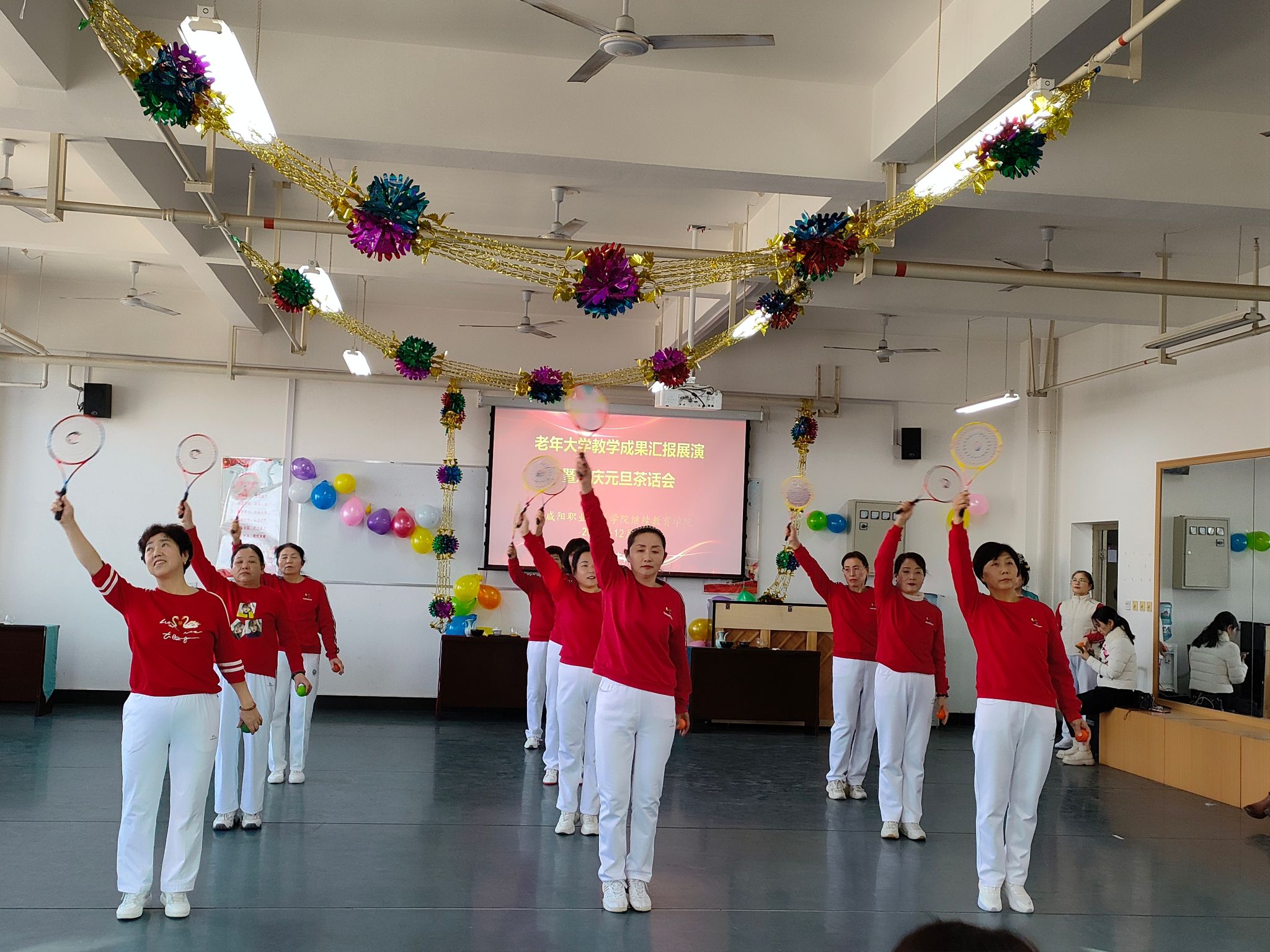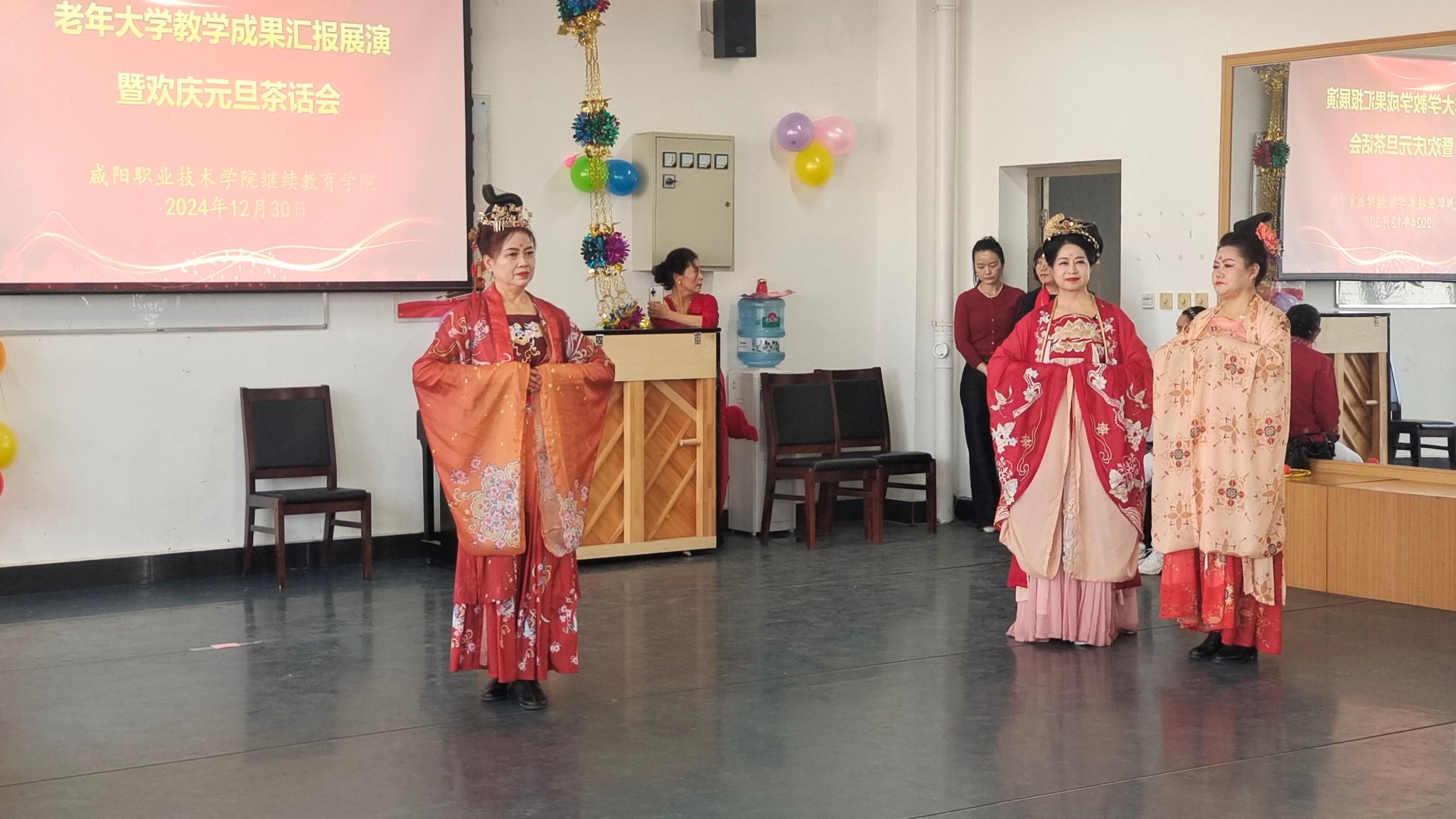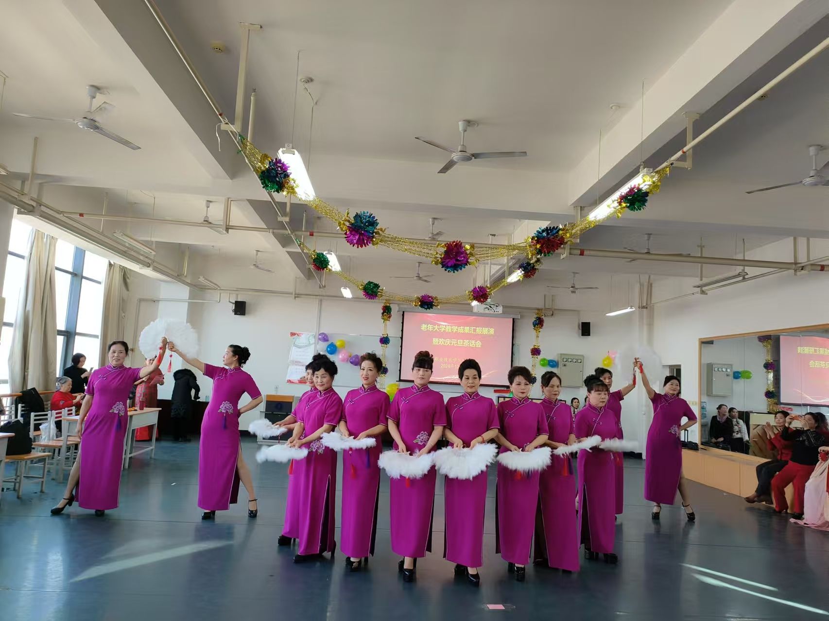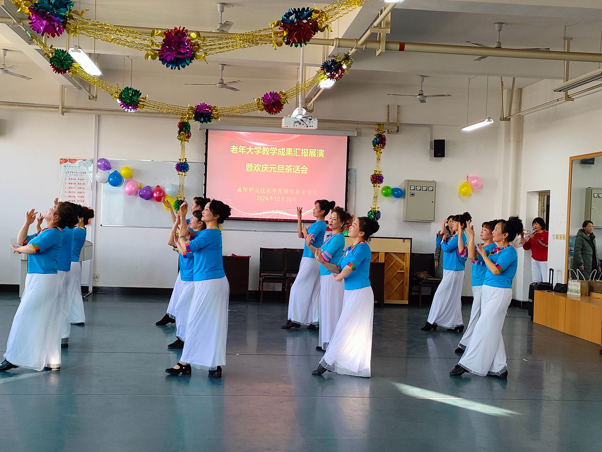 12月30日,老年大学教学成果汇报展演暨欢庆元旦茶话会在6号教学楼626室成功举办。bst365经理冯小菊、沣润和园社区党委书记孔海琴以及两委委员和bst365在家全体教职工欢聚一堂,共同观看了汇报演出。