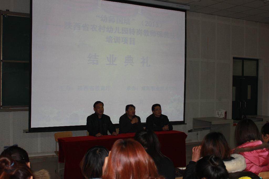 12月14日,“幼师国培”2013陕西省农村幼儿园转岗教师技能培训(bst365官方网站培训基地)汇报展演暨结业典礼在公司艺术楼一楼举行。bst365主要领导及全体参训学员参加会议。杨西舟经理主持会议并作重要讲话。