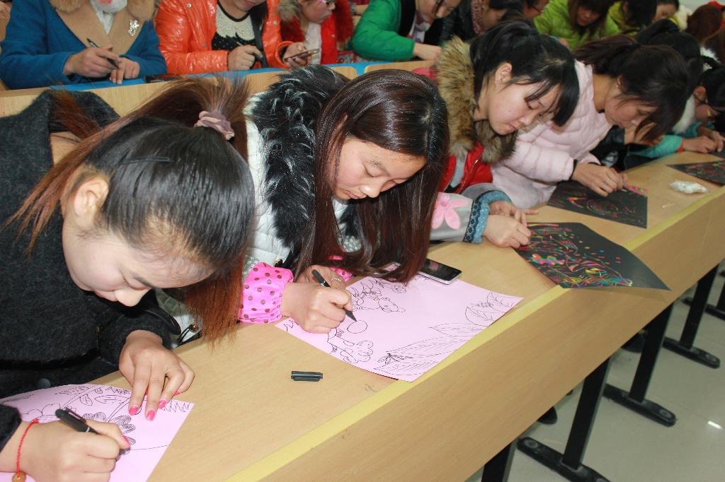 汇报演出中,学员们倾情表演了舞蹈《马兰谣》、《轧彩灯》、《青春魅力》、三拍舞步《摩登女孩》等舞蹈节目。在手工制作展示环节中,学员们或独立、或协作现场绘制了生动活泼的绘画和手工作品。诚挚而又热烈的掌声,是学员老师们先给自己最好的礼物。