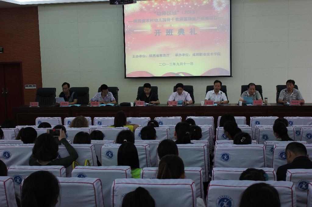 9月11日上午,“幼师国培”(2013)陕西省农村幼儿园骨干教师脱产置换研修项目开班典礼在信息楼201会议室顺利举行。省国培项目执行办公室主任苏理、副主任罗昆山、咸阳市教育局团队科科长来志宏、公司副经理席尚君等领导以及全体参训学员参加典礼。继教中心主任杨西舟主持会议。