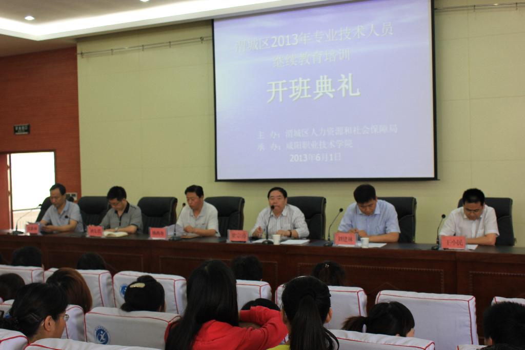 6月1日,渭城区2013年专技人员继续教育培训开班典礼在信息楼201多功能厅隆重举行。渭城区人力资源和社会保障局局长刘建林、副局长王小民、公司纪委书记梁宗涛等主要领导及390余名学员参加了开班典礼。刘建林局长、梁宗涛书记作重要讲话,继教中心主任杨西舟主持会议。