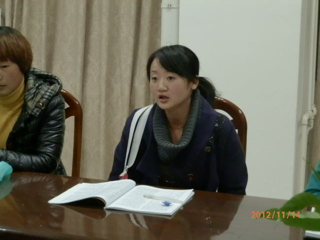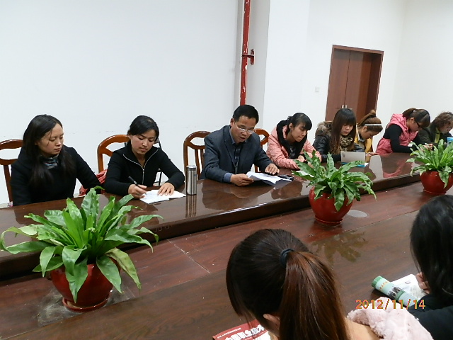11月13日下午6:30,继教中心组织“幼师国培”(2012)第一期学员代表在信息楼105会议室召开座谈会,讨论学习张雄强副厅长和刘聪博经理在开班典礼上的讲话精神。培训科科长苏伟主持了会议。