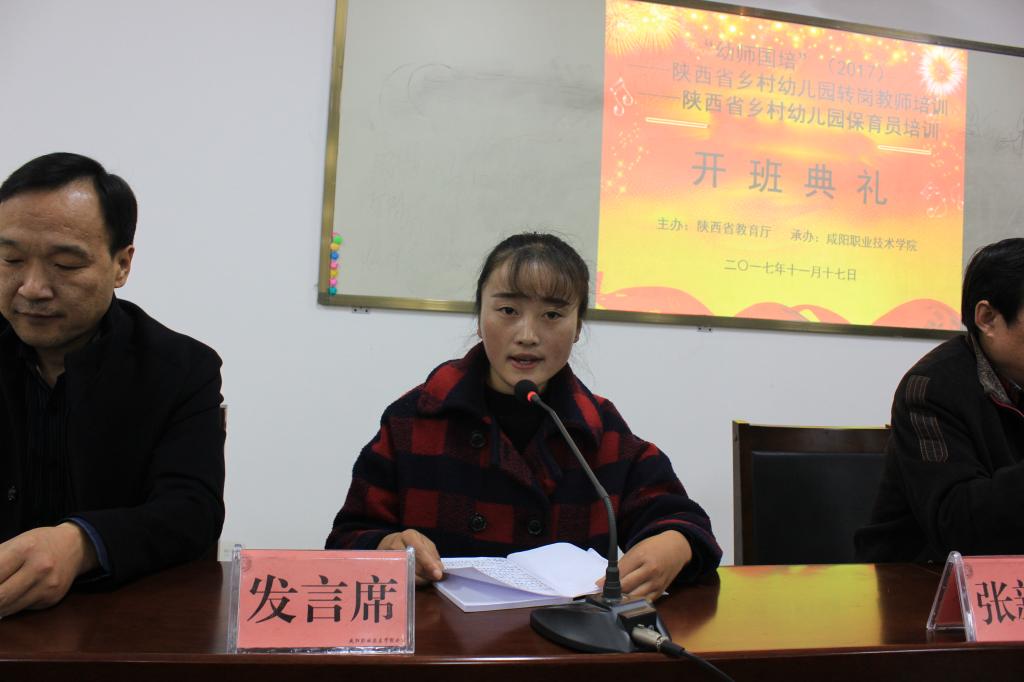 会议对培训工作作具体安排。来自铜川市宜君县雷塬幼儿园的田倩倩作学员代表发言。