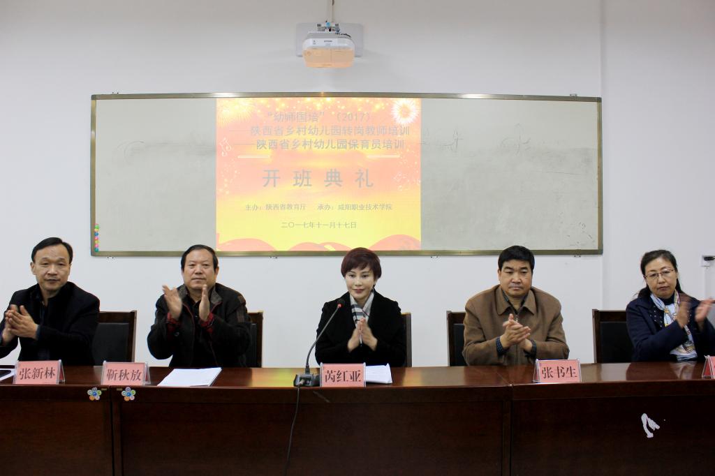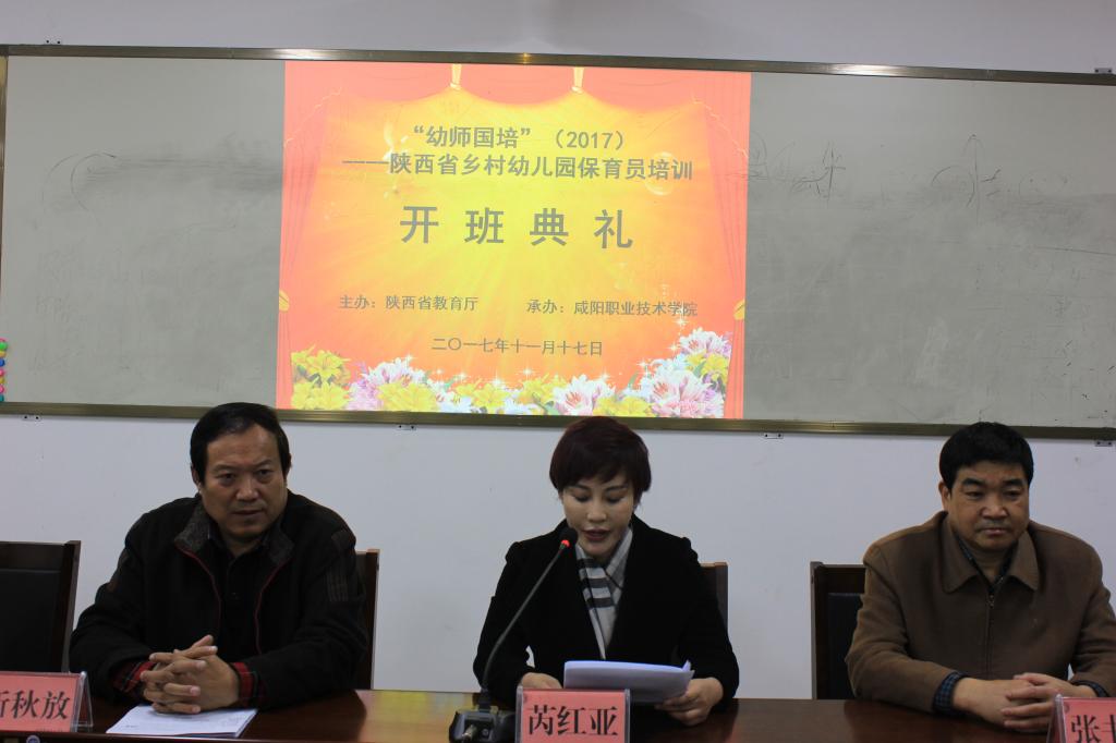 11月17日上午,bst365官方网站2017年“幼师国培”---陕西省乡村幼儿园转岗教师及保育员培训项目开班典礼在综合教学楼621教室举行,本年度幼师国培工作就此拉开帷幕。副经理芮红亚出席典礼并作重要讲话。bst365经理靳秋放主持开班仪式。