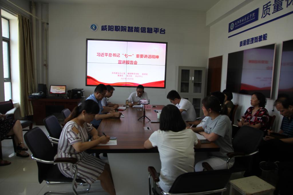 7月29日下午,咸阳职公司党委宣讲团团长李信为bst365、双高建设办公室、基建处、国资处、保卫处、实训中心等六个部门全体党员作学习贯彻习近平总书记“七一”重要讲话精神专题讲座。