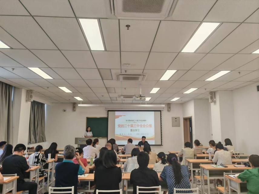 9月13日下午,公司党总支与财经公司党总支共同举办二十届三中全会宣讲报告会。公司党总支书记郭杨华、经理冯小菊及全体教职工参加会议。本次宣讲报告会特别邀请公司二十届三中全会宣讲团成员王欣老师作辅导报告。