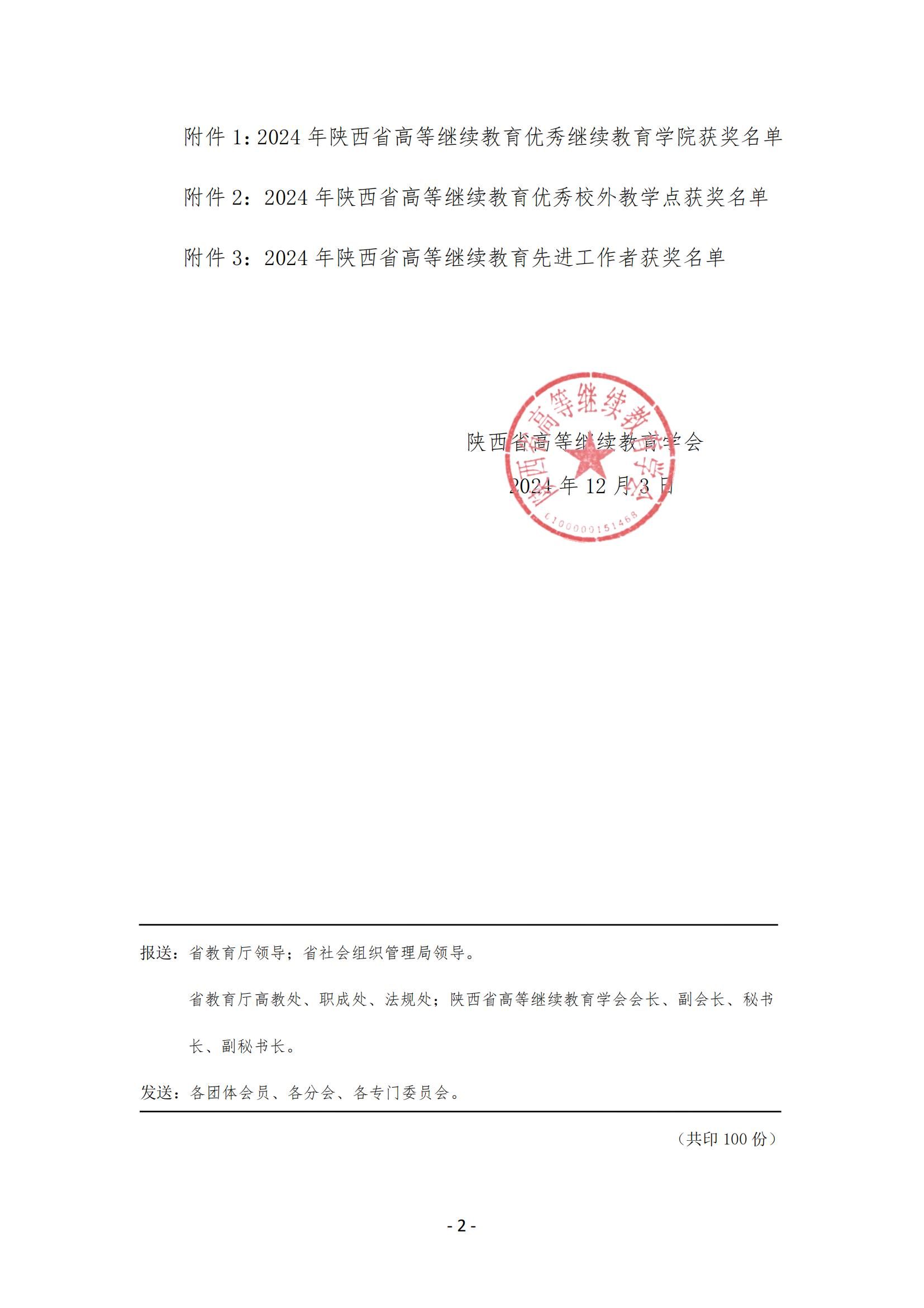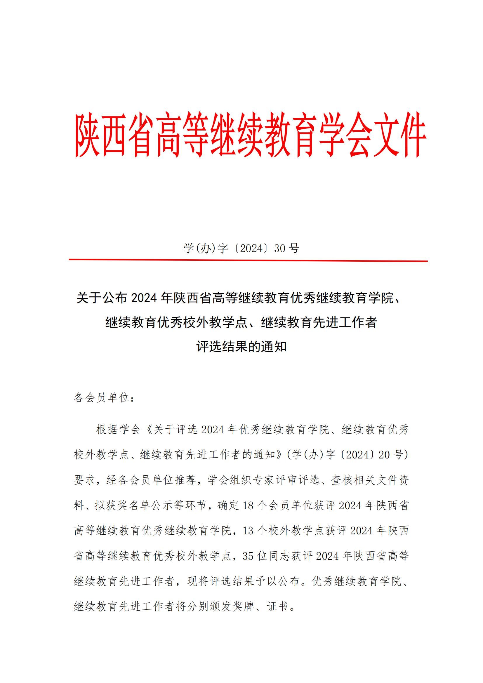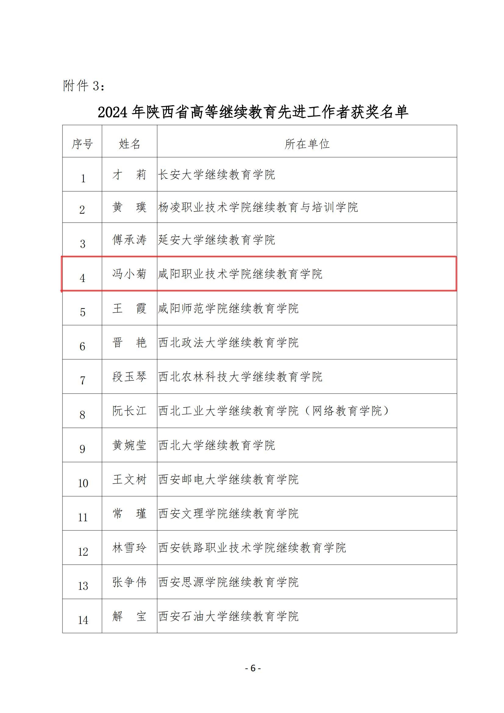 12月3日,陕西省高等继续教育学会下发《关于公布2024年陕西省高等继续教育优秀bst365、继续教育优秀校外教学站点、继续教育先进工作者评选结果的通知》,经陕西省高等教育学会组织专家评审评选,bst365经理冯小菊同志获评全省“继续教育先进工作者”称号。