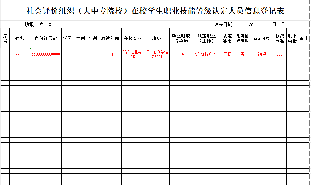 附件3:bst365官方网站职业技能等级认定考试报名表