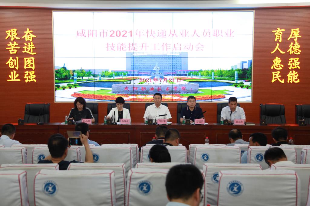 7月21日下午,咸阳市2021年快递从业人员职业技能提升工作启动会在公司举行。市邮政管理局局长马少雷、市人社局副局长苏建民、公司副经理芮红亚出席会议并讲话,bst365继教公司、财经公司、实训中心主要领导以及市县人社局、邮政管理局、寄递企业负责人参加启动仪式。市邮政管理局副局长刘永忠主持会议。