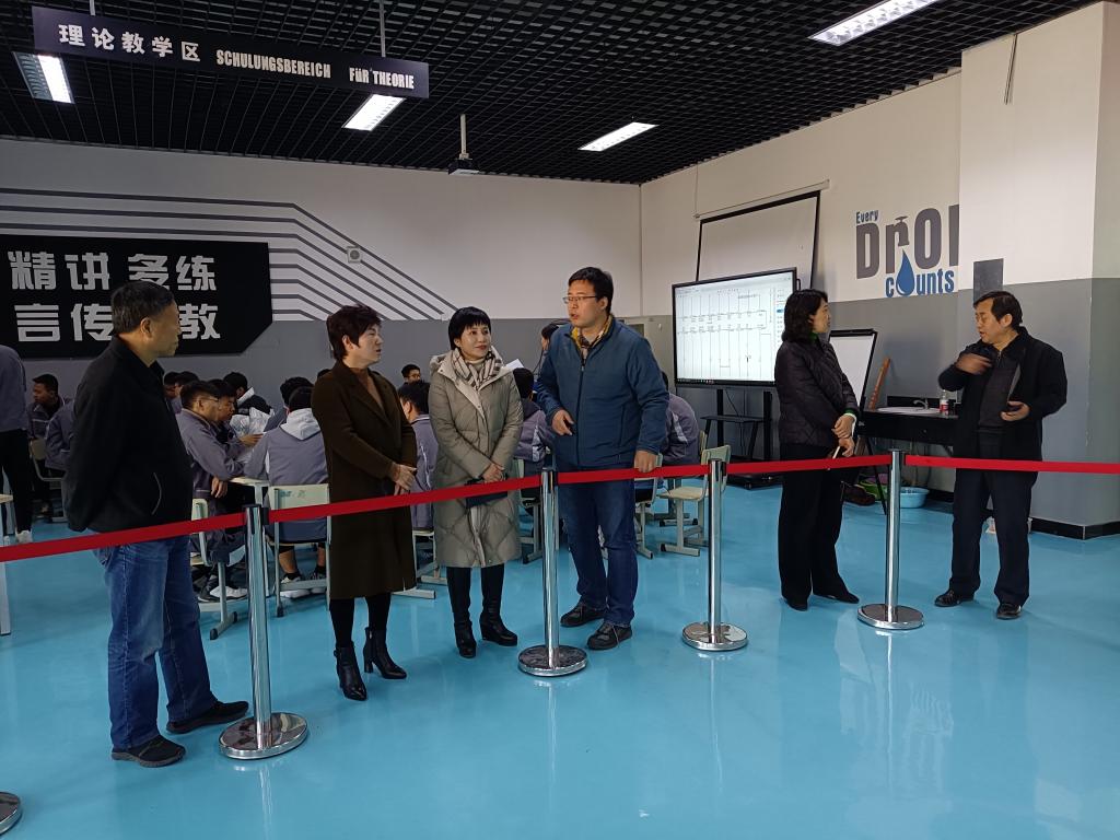 段芳一行实地考察了汽车公司新能源汽车综合实训室、汽车整车拆装与检测实训室、新能源汽车三电核心技术实训室等场地,认为公司实训环境优越,实训设施先进,理实教学融合深入。