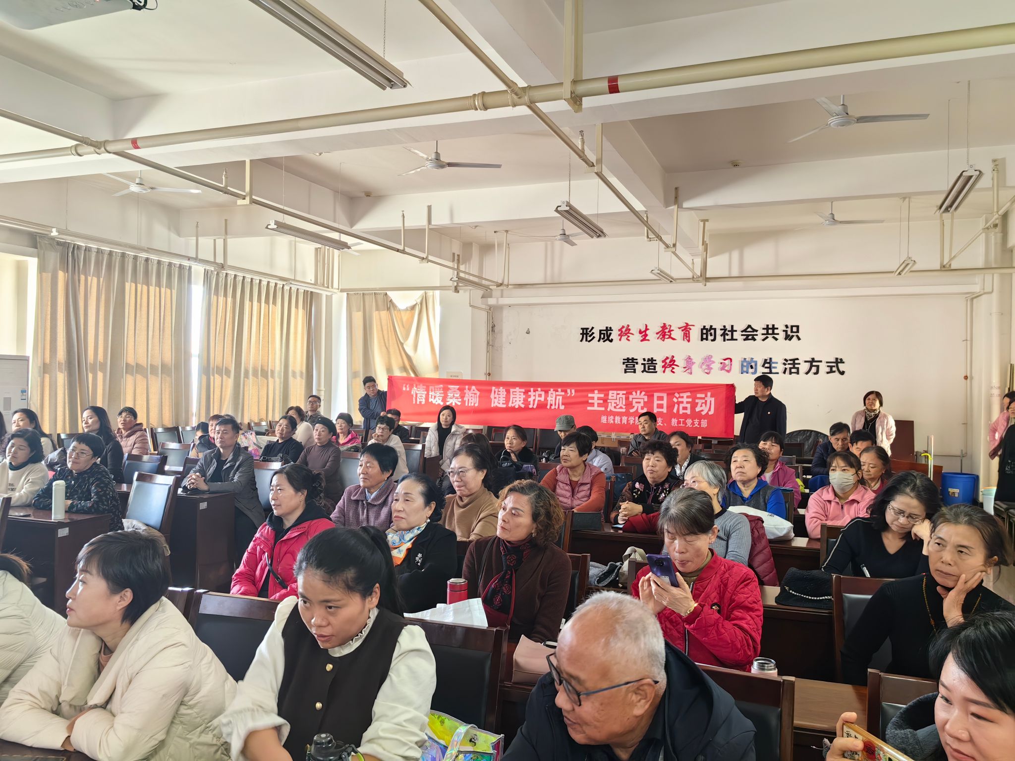 11月18日,公司党总支、教工党支部组织全体党员走进公司老年大学,开展“情暖桑榆 健康护航”为主题的党日活动。活动聚焦老年人健康需求,通过专业教师公益授课、实操演示等形式,为老年学员送去实用的健康知识与护理技能。